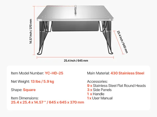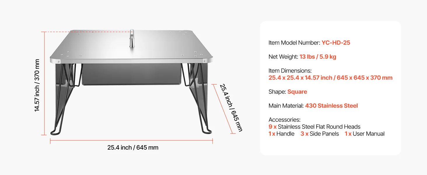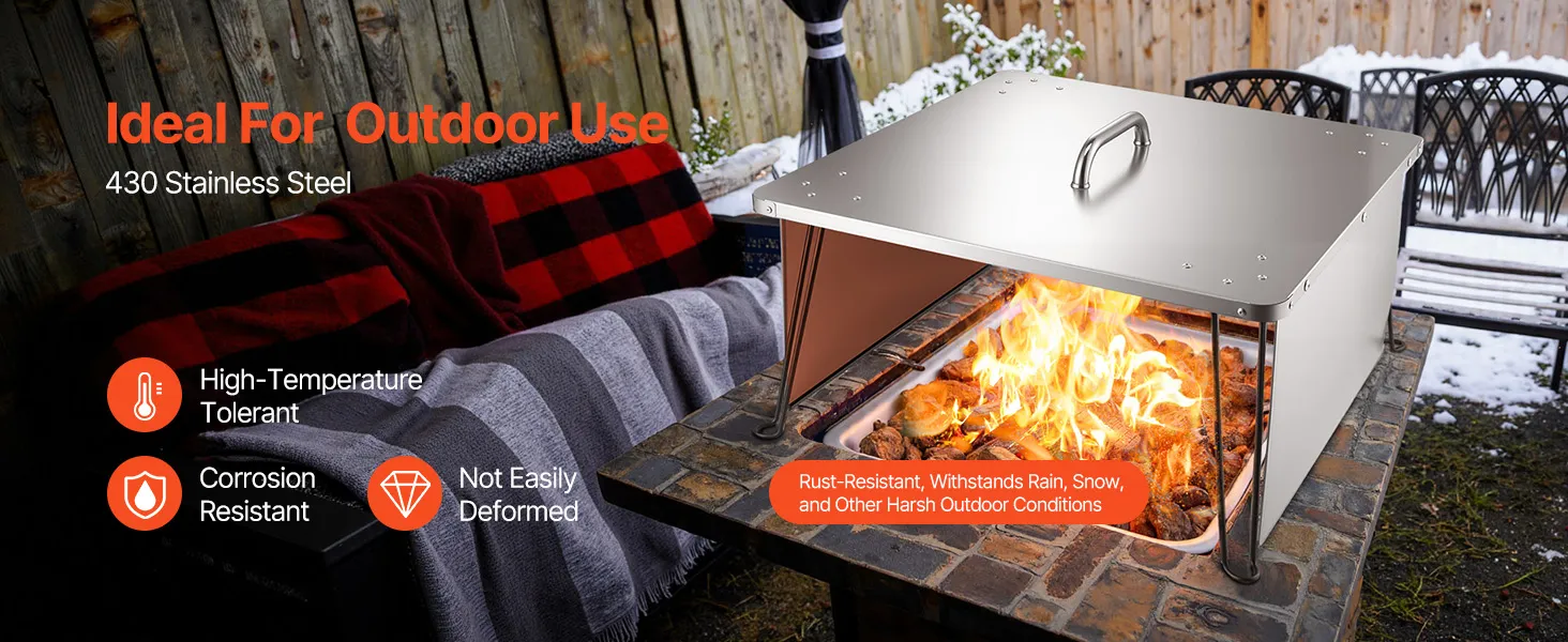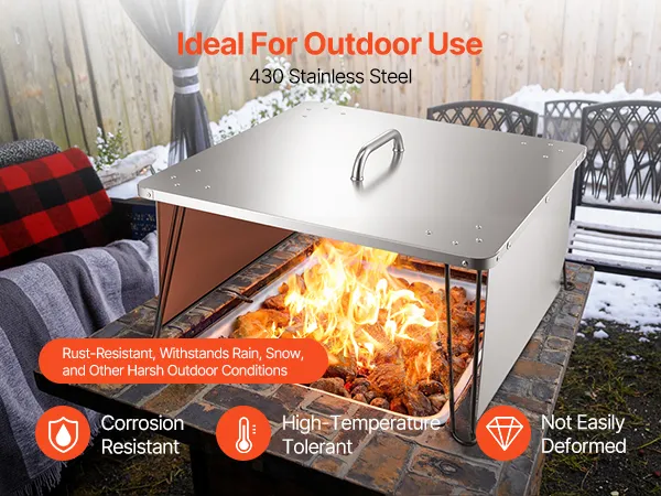 VEVOR Feuerstelle Deckel, 645x645x370 mm, quadratischer Outdoor-Feuerschalendeckel aus Edelstahl für Lagerfeuer, Camping, Holzverbrennung, mit 4 klappbaren Beinen und Tragegriff