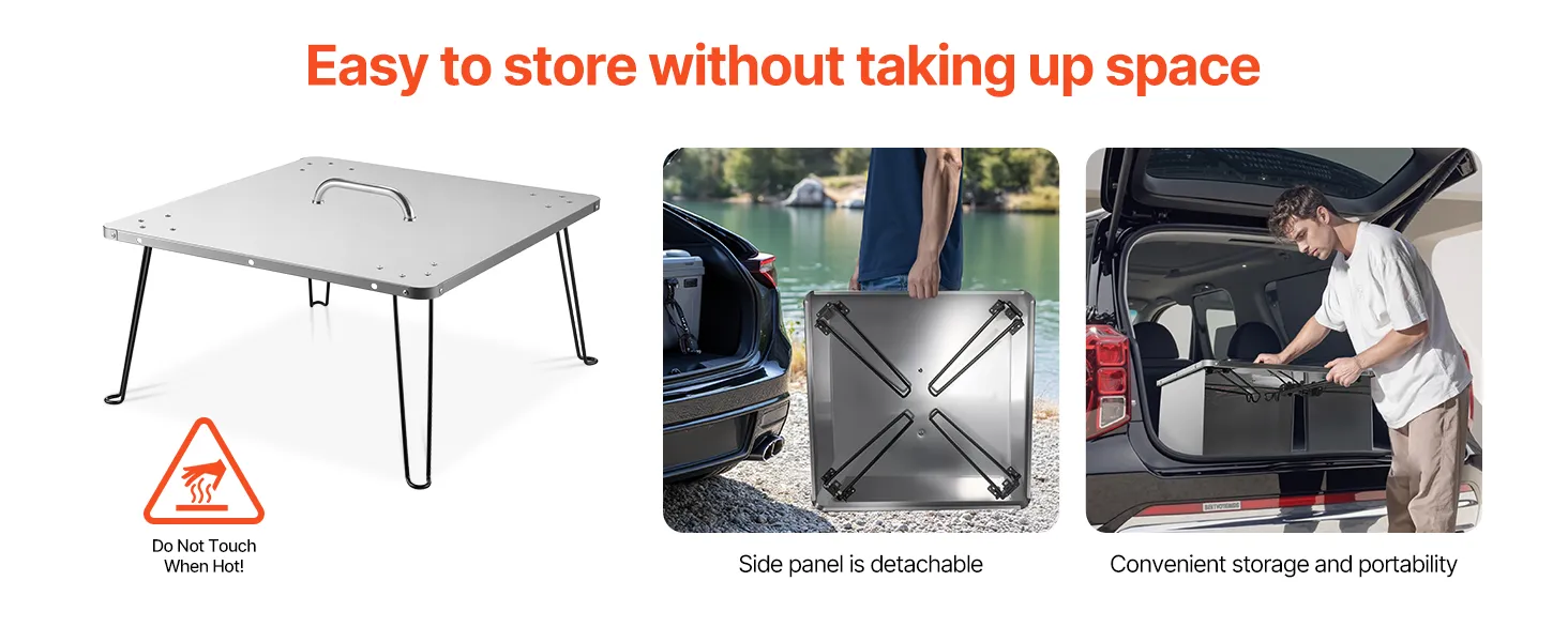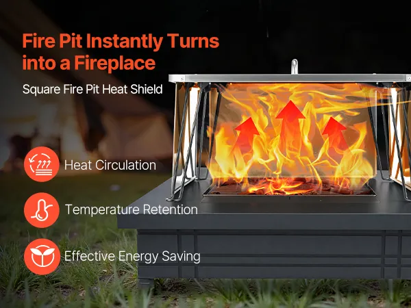 Der Hitzeschild der Feuerstelle verfügt über eine Edelstahlabdeckung, ist hitzebeständig und funkensicher. Er bietet Platz für Grillnetze oder Aluschalen zum Rösten von Marshmallows, Süßkartoffeln oder kleinem Fleisch. Gleichmäßige Wärmeverteilung und stabile Standbeine sorgen für zuverlässigen Einsatz beim Kochen im Freien.