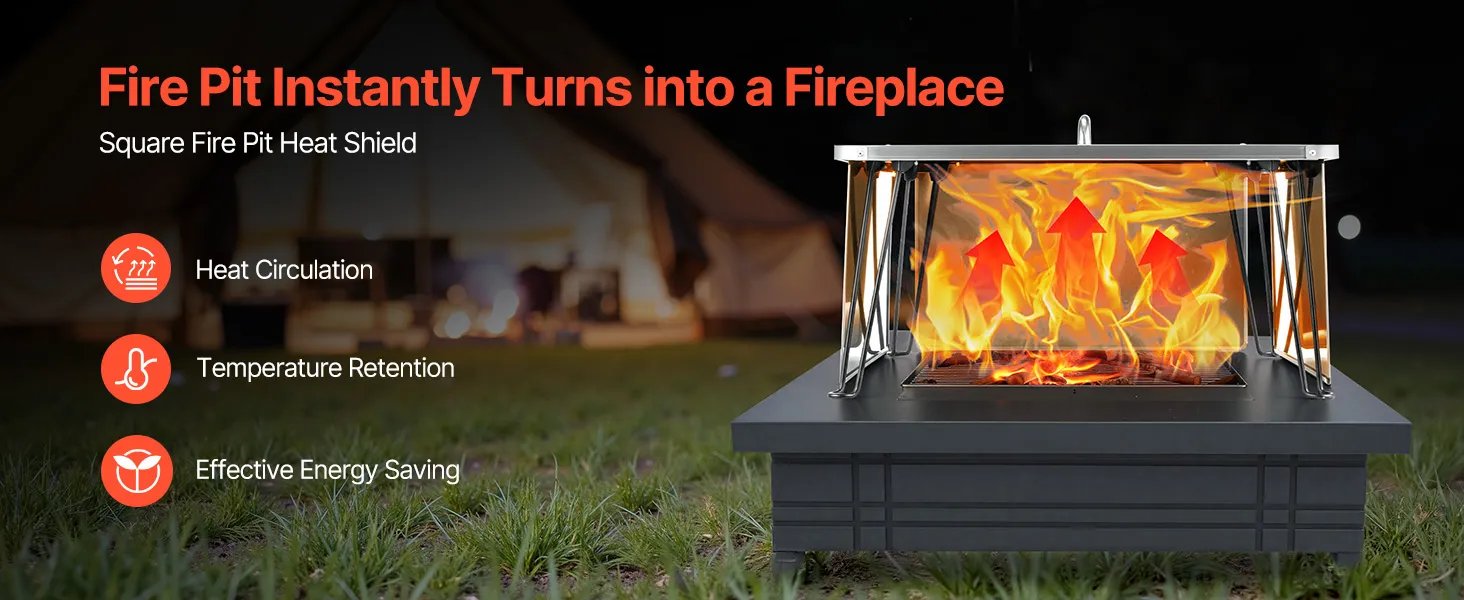 Verbesserte Heizleistung: Unser Hitzeschutz verhindert vertikalen Wärmeverlust und verteilt die Wärme über eine größere Fläche. Er reduziert den Brennholzverbrauch und verlängert die Brenndauer. So wird Ihr Lagerfeuer effizienter, komfortabler und energiesparender.