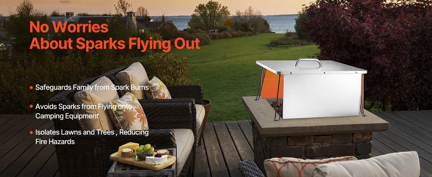 Sichere Heizung: Blockiert hohe Hitze, sodass keine Schäden an Holz, Stein oder Gras entstehen. Funkenbildung wird effektiv vermieden und das Brandrisiko reduziert. Das abgerundete Design sorgt für eine sichere Heizung bei Familienfeiern und Campingabenden.