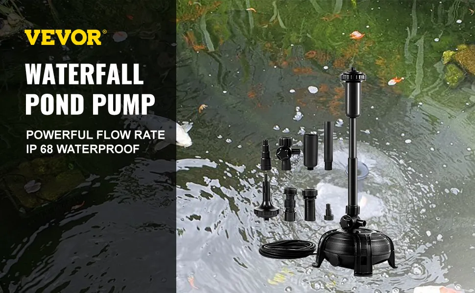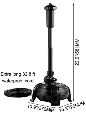 Die Wasserpumpe besteht aus einem wasserdichten PP- und ABS-Gehäuse für Langlebigkeit und Langlebigkeit. Das Koi-Teichbrunnen-Kit enthält zwei Brunnenköpfe, einen Teleskop-Steigrohrschaft, eine Pumpenhalterung und Armaturen für eine einfache Bedienung.