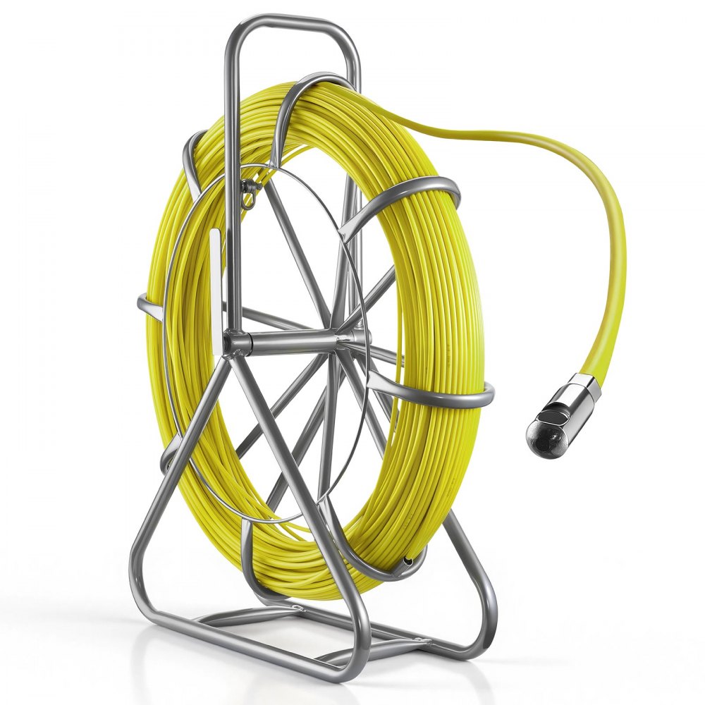 VEVOR Fiberglas Kabel Rad 152 m Ø6,3mm Glasfaserstab, Fischband mit Ständer, Kabeleinziehhilfe mit Markierungen, Kabeleinfädler, Kabelzieher für Wände & Elektroinstallationsrohre, Nichtleitend