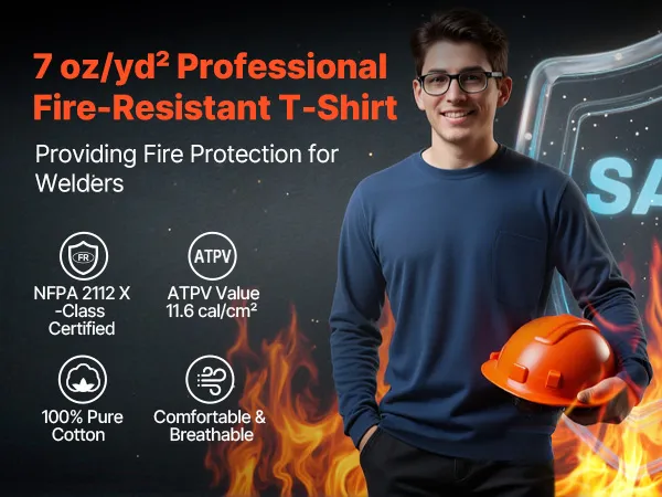 Dieses T-Shirt besteht aus reiner Baumwolle (7 oz/yd²) und bietet hervorragende Flammbeständigkeit mit einem ATPV-Wert von 11,6 cal/cm². Dies gewährleistet Sicherheit unter extremen Bedingungen. Ideal für Hochrisikoumgebungen wie Metallwerkstätten, Baustellen, Industrieanlagen und Stromverteilungsräume.