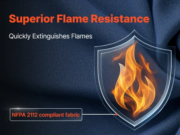 Professionelles FR-Arbeitskleidung: Dieses Shirt erfüllt die NFPA 2112-Norm mit einem ATPV-Wert von 11,6 cal/cm². Es verlöscht nach Feuereinwirkung selbst und setzt keine schädlichen Gase frei, wodurch das Verbrennungsrisiko unter extremen Bedingungen reduziert wird.