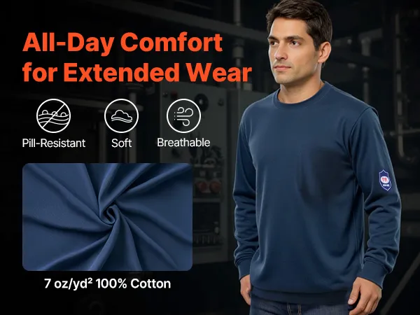 Robuste und vorgeschrumpfte FR-Shirts: Diese FR-Shirts sind vorgewaschen und vorgeschrumpft, um ein Einlaufen oder Verziehen nach über 100 Wäschen zu verhindern. Sie behalten ihre ursprüngliche Passform und Flammbeständigkeit über lange Zeit.