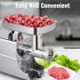 Mehrere Belüftungslöcher sorgen für eine gute Wärmeableitung; eine Fleischschale aus Edelstahl ist im Lieferumfang enthalten, um mehr Fleisch für zeitsparendes Mahlen aufzunehmen. Außerdem verfügt er über zwei Mahlplatten und eine Vorwärts-/Rückwärtsfunktion.