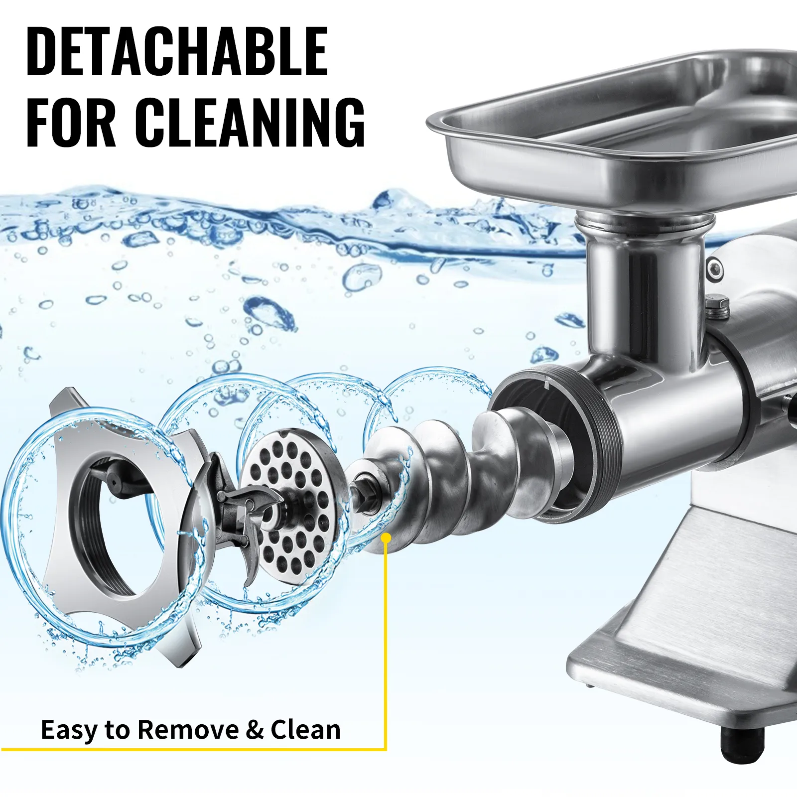 Mit einem 1100-W-Hochleistungsmotor und einer Drehzahl von 180 U / min kann die Mahlkapazität bis zu 661 Pfund (ca. 300 kg) Fleisch pro Stunde betragen, was die Effizienz des Fleischmahlens erheblich verbessert.