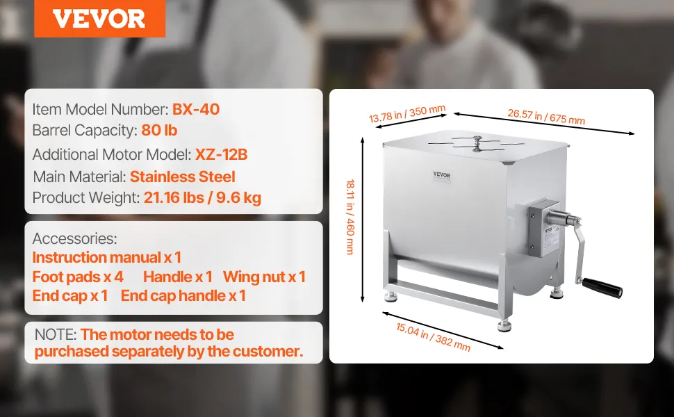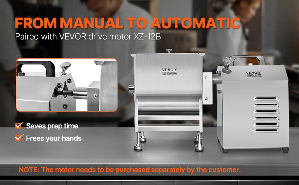Getriebeaufbau: Dieser Fleischmixer verfügt über ein Getriebedesign, das die Bedienung müheloser macht. Er ist mit den VEVOR-Antriebsmotoren XZ-12B kompatibel und ermöglicht eine freihändige Bedienung, sodass eine Person die Aufgabe problemlos erledigen kann