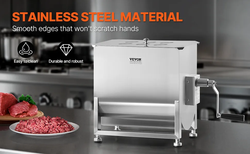 Dieser Fleischmixer ist aus robustem 201 Edelstahl gefertigt und garantiert so eine lang anhaltende Stärke. Er ist einfach zu bedienen und kann große Mengen verschiedener Fleischsorten effizient mixen.