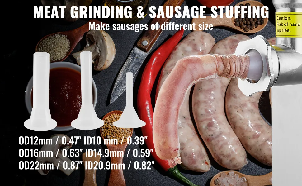 Außer Hackfleisch können Sie damit auch verschiedene Wurstsorten herstellen. Enthält eine Edelstahlklinge, eine Schneidplatte zum groben und feinen Zerkleinern von Fleisch, eine Wurstfüllplatte, drei Wurstfüllrohre, einen Fleischklopfer und eine Reinigungsbürste.