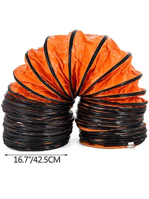 Unsere brandneuen Belüftungsschlauch mit einem Durchmesser von 17 Zoll sind flexibel und tragbar. Er besteht aus zweischichtigem, schwer entflammbarem Polyvinyl. Mit den mitgelieferten Nylonseile kann der Lüfter einfach installiert werden.