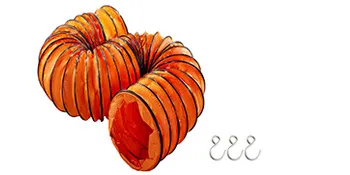 Der 17-Zoll-Schlauch ist superflexibel, entflammbar und einfach zu installieren. Außerdem ist er leicht an die saugseitige Lüfterlippe anzuschließen.