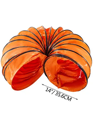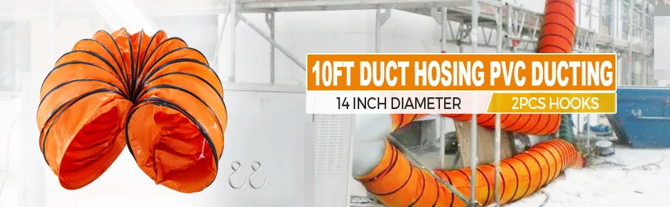 Unsere brandneuen Belüftungsschlauch mit einem Durchmesser von 14 Zoll sind flexibel und tragbar. Er besteht aus schwer entflammbarem Polyvinyl. Mit den mitgelieferten Nylonseile kann der Lüfter einfach installiert werden. Die Lasthaken dienen zum einfachen Aufhängen von Schlauch.