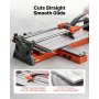Einmal schneiden, kein Nacharbeiten: Der Aluminium-Linearführungskopf gleitet sanft beim Schieben und Ziehen und sorgt so für gerade Schnitte. Dieser Fliesenschneider verarbeitet Fliesen zuverlässig. Die Genauigkeit von ±0,5 mm/m liefert saubere Kanten mit weniger Ausbrüchen und ohne zusätzliche Schnitte