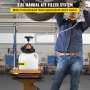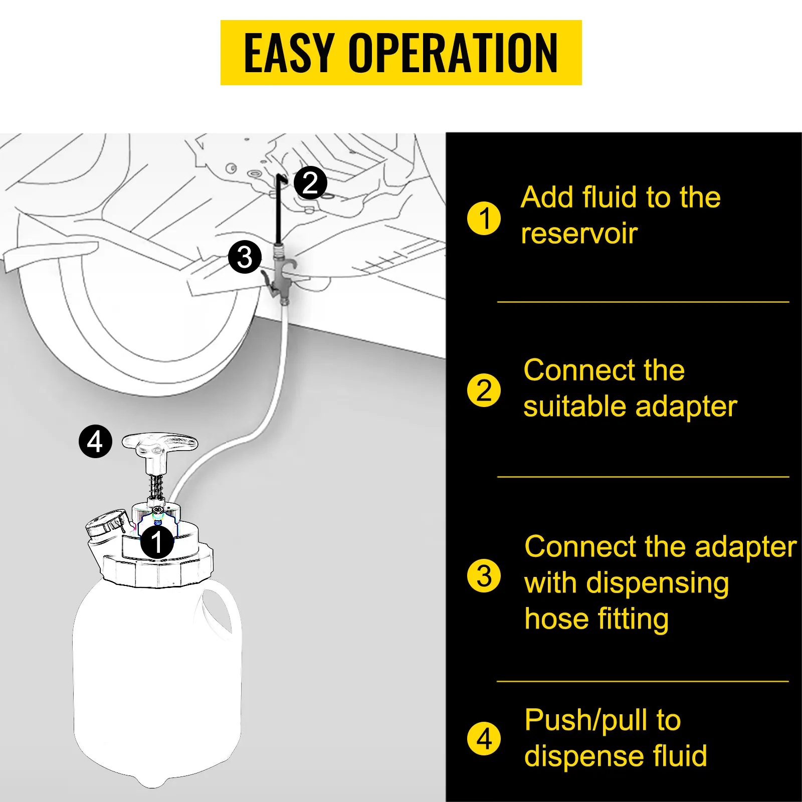 Schrauben Sie den Deckel ab, füllen Sie Flüssigkeit in den Behälter und schließen Sie den passenden Adapter an das Fahrzeug an. Verbinden Sie dann den richtigen Adapter mit dem Zapfschlauchanschluss. Drücken / Ziehen, um die Abgabe von Getriebeöl zu starten.