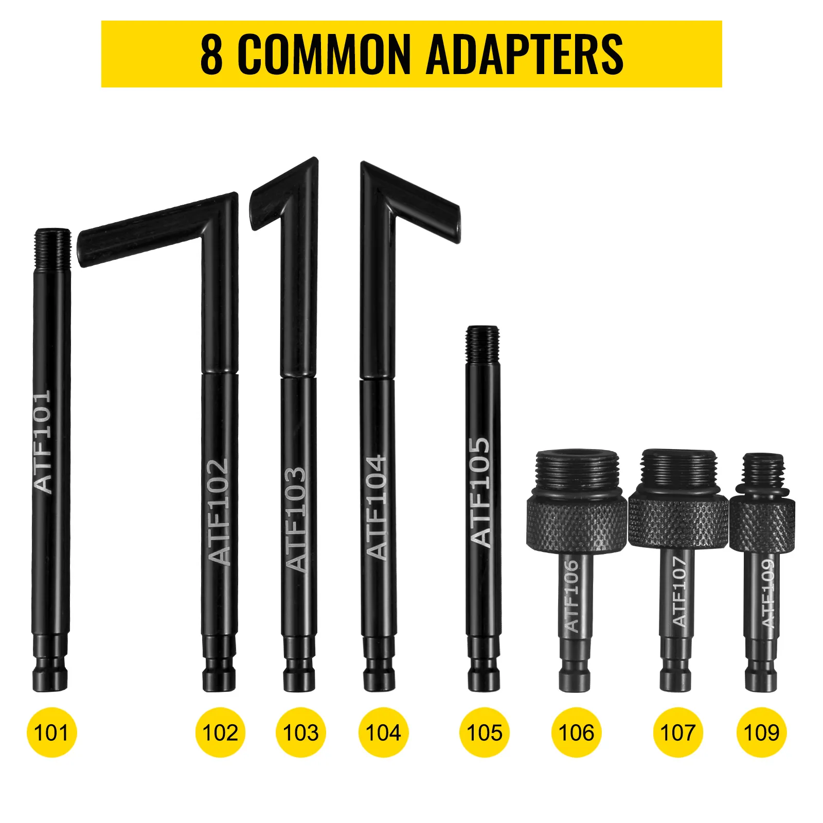 Acht Stück Getriebefülladapter sind in einem Klettband verpackt, die Adapter passen für die meisten Fahrzeuge auf dem Markt, wie Audi, BMW, Mercedes, Lexus, Porsche, DSG, CTV, Ford, VW und mehr.