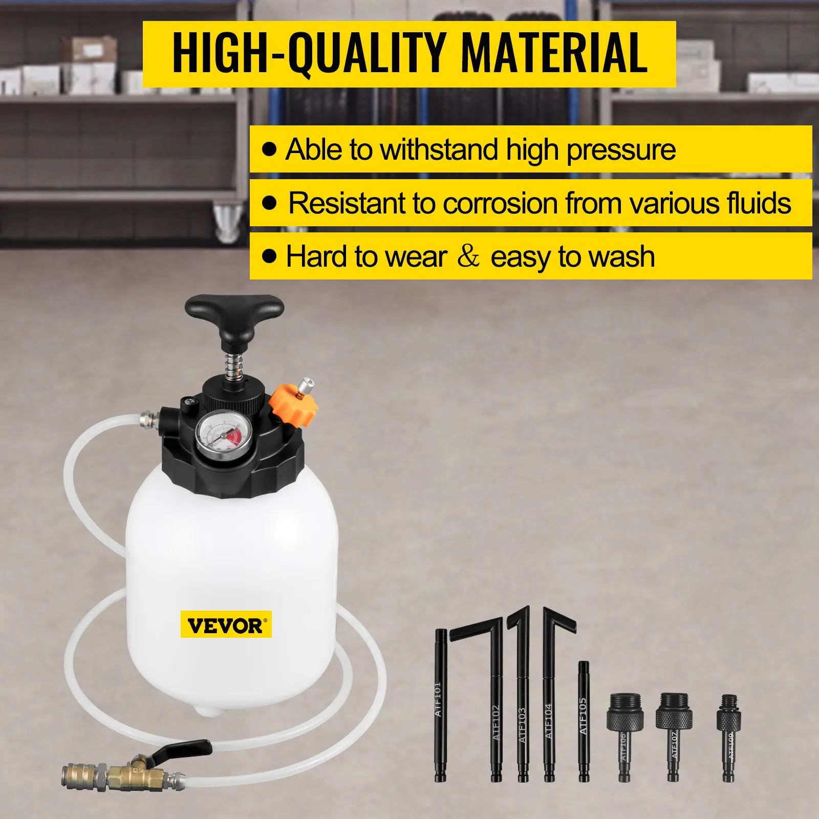 Unsere 3 L Öl absaugpumpe ist mit einem Durchflussregelventil, einem Überdruckventil und einem Manometer ausgestattet. Sie wird mit 8 ATF-Adaptern geliefert, die mit den meisten Getriebesystemen kompatibel sind. Sie ist langlebig und einfach zu bedienen.