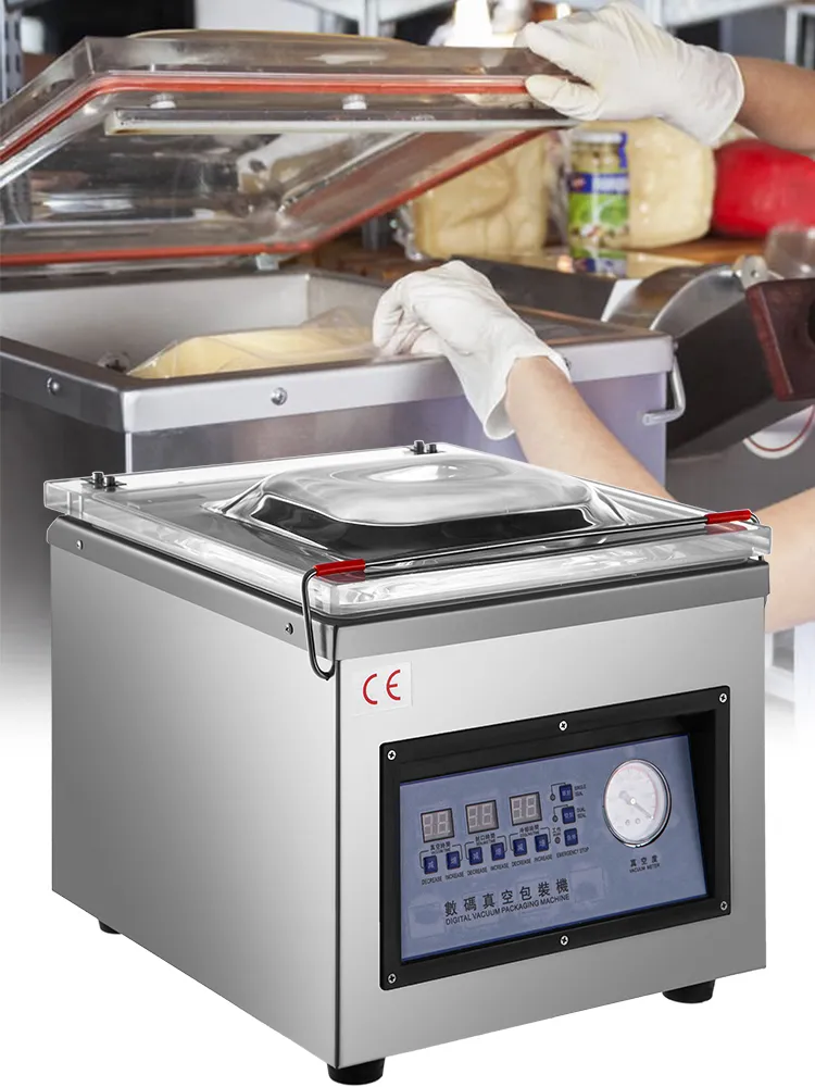 Wir bieten Ihnen diese digitale Vakuumverpackungsmaschine an. Unter Verwendung von Kunststoff-Verbundfolien oder Kunststofffolien-Verbundfolien als Verpackungsmaterialien können Lebensmittel, Getreide, Obst, konservierte Früchte, chemische Medizin, medizinische Materialien, elektronische Elemente, präzise Instrumente, seltene Metalle usw. gesaugt und verpackt werden. Ob flüssig, fest, Pulver oder Paste, alle können von dieser Maschine verpackt werden. Darüber hinaus besteht unser Produkt aus einem transparenten Glasdeckel, sodass Ihnen der Verpackungsprozess vollständig angezeigt wird. Unser kompaktes Produkt ist definitiv Ihre beste Wahl.