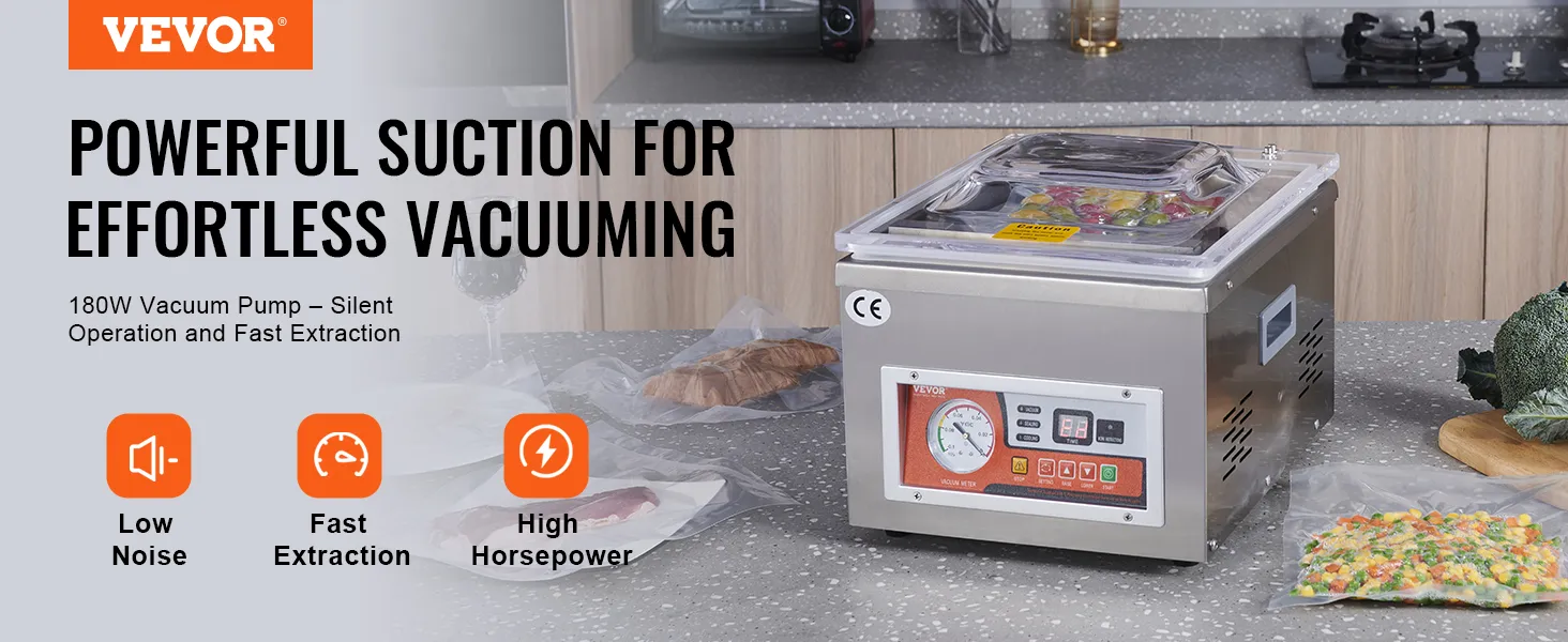 This chamber vacuum sealer is made of stainless steel, which is food-safe and durable. Furthermore, this material is strong and waterproof, easy to clean, and can be used for a long time.