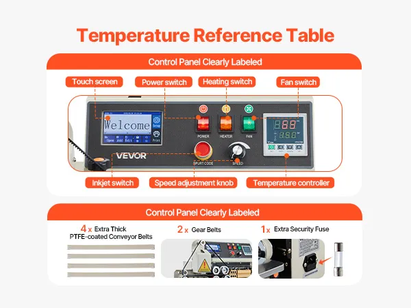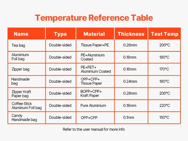 Einfache Bedienung: Stellen Sie die Temperatur von 0–300 °C mit einer Schnelltabelle für eine einfache Einrichtung ein. Das Endlosband-Versiegelungsgerät eignet sich hervorragend für Lagerhallen, Geschäfte, kleine Werkstätten, Baumärkte oder Bäckereien und bietet flexible Versiegelung