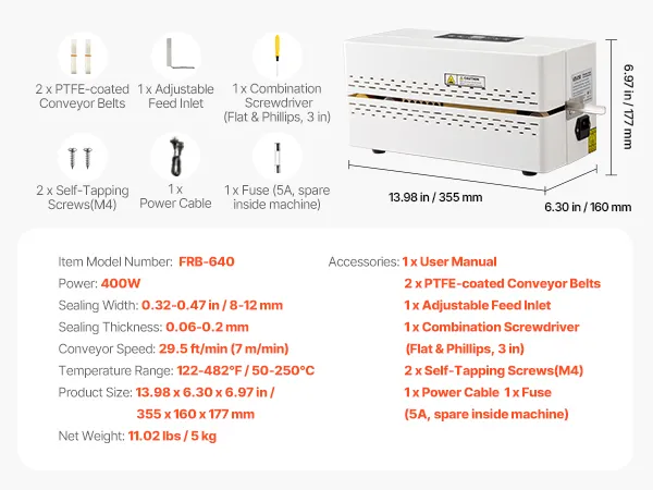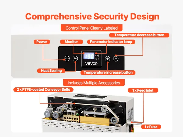 VEVOR Versiegelungsmaschine, 8-12 mm Siegelbreite, Automatischer Durchlaufbandschweißer mit digitaler Temperaturregelung, Abschaltautomatik, Heißsiegelgerät für 0,06-0,2 mm Plastiktüten