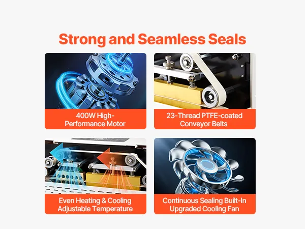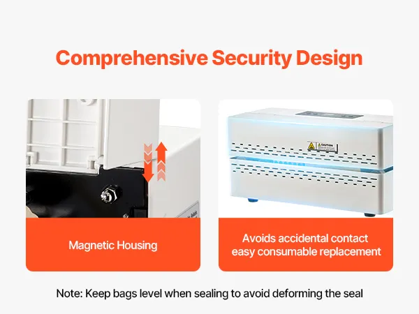 Rundum schützendes Design: Die abgedeckte Heizzone des Bandschweißgeräts vermeidet versteckte Risiken und verfügt über eine automatische Abschaltung bei 50 °C. Sobald es auf 50 °C abgekühlt ist, schaltet es sich sicher ab, sodass Sie die Versiegelung abschließen und problemlos weggehen können.
