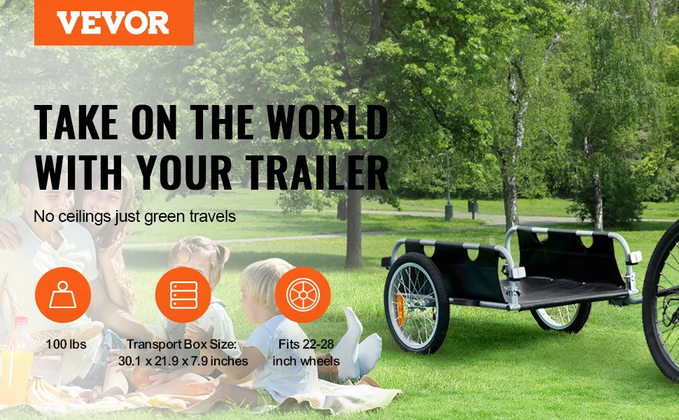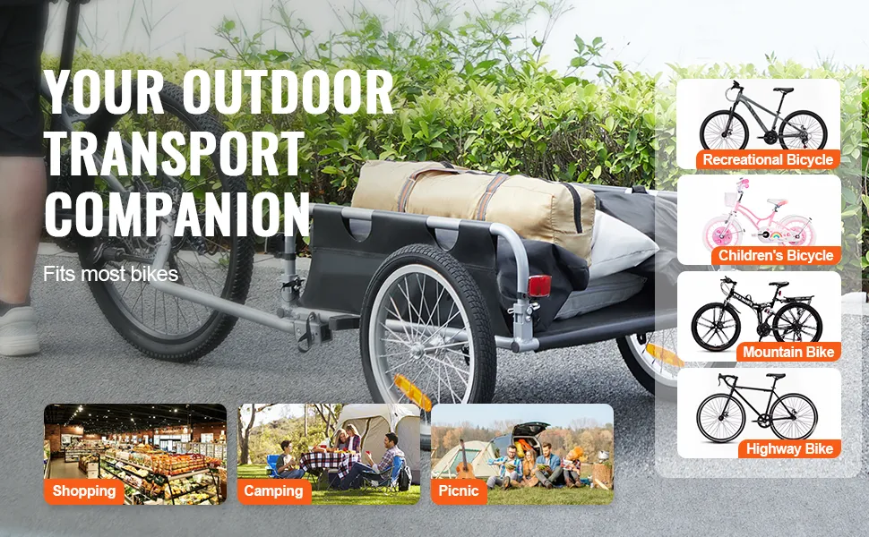 Dies ist ein großartiges Werkzeug für alle Fahrradaktivitäten. Unser VEVOR-Fahrradanhänger mit Schnellverschluss bietet umfassende Kompatibilität. Er passt für Fahrräder mit Radgrößen von 22 bis 28 Zoll. Dazu gehören Freizeitfahrräder, Kinderfahrräder, Mountainbikes und Rennräder. Die Universalkupplung sorgt für festen Halt. Sie können ihn zum Einkaufen, Campen und Picknicken verwenden. Warum ist der Anhänger so vielseitig? Da er sich nahtlos an verschiedene Fahrradmodelle anbringen lässt, sorgt diese Funktion auch für Komfort und Zweckmäßigkeit.