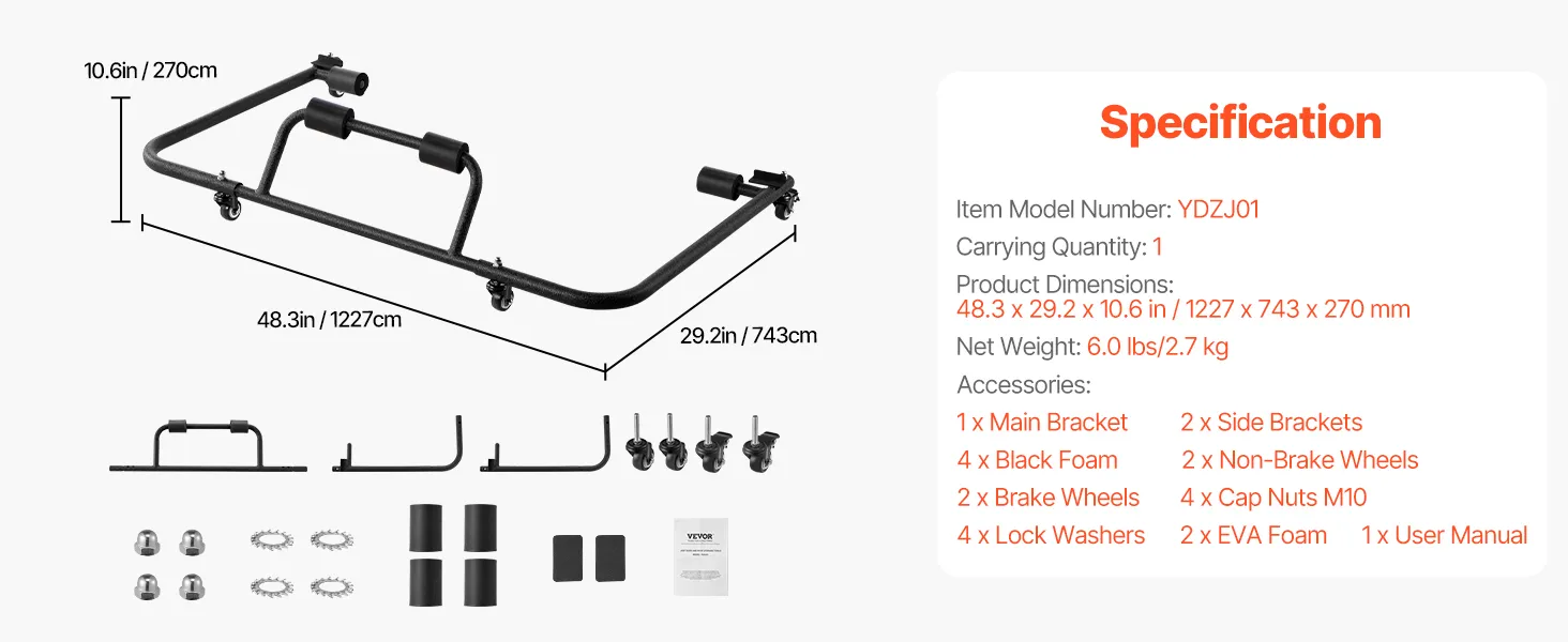 VEVOR Aufbewahrungswagen für Autodach beweglicher Wagen mit 3 verstellbaren Löchern und dicker Polsterung, Aufbewahrungsgestell mit Pulverbeschichtung, passend für Jeep Wrangler TJ JK