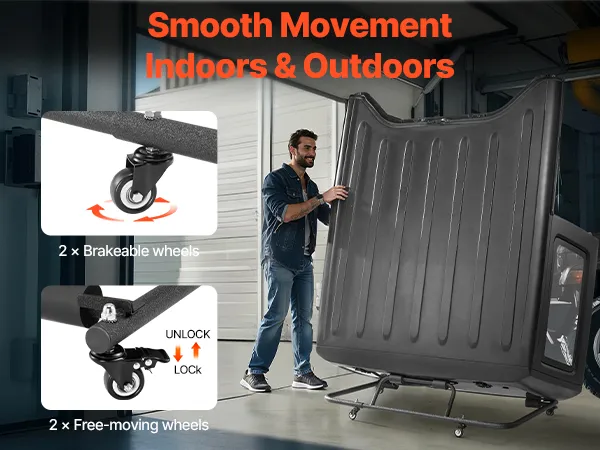 Mit Bremsrollen: Dieser Wagen ist mit 4 leichtgängigen Rollen ausgestattet, von denen zwei über Bremsfunktionen verfügen, sodass der Wagen auf jeder Oberfläche stabil bleibt. Ob auf einem glatten Garagenboden oder unebenem Boden im Freien, er lässt sich leicht bewegen und hat einen festen Stand