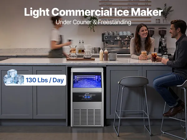 This ice maker makes 50 cubes in 8-10 minutes and up to 130 lbs/day. Low energy use, low noise, and a corrosion-resistant, easy-clean stainless-steel body. The LED panel adjusts ice size/time, monitors temperature, and supports auto-cleaning and a timer. Use it freestanding or built-in under the counter—ideal for restaurants, bars, offices, outdoor parties, and home gatherings.