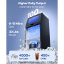 • Effiziente Eisproduktion mit großem Speicher: bis zu 45 kg (100 lbs) Eis pro Tag und 36 Eiswürfel in 8–10 Minuten. Der 14 kg (30 lbs) fassende Eisbehälter eignet sich für über 600 Getränke täglich und ermöglicht einen reibungslosen Ablauf