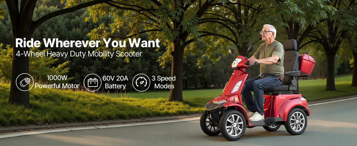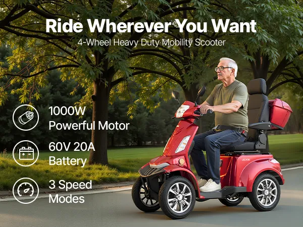 VEVOR Heavy Duty 4-Wheel Mobility Scooters for Seniors & Adults, 500lbs Capacity, 35 KM 3-Speed Long Range, 1000W All Terrain Electric Recreational Scooter Wheelchair, 20° Max Climbing Capacity VEVOR Heavy Duty 4-Wheel Mobility Scooters for Seniors & Adults, 500lbs Capacity, 35 KM 3-Speed Long Range, 1000W All Terrain Electric Recreational Scooter Wheelchair, 20° Max Climbing Capacity