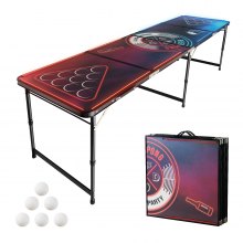 VEVOR tragbarer Beer Pong Tisch (240 x 60 x 52/70 cm), Beerpong Tisch mit Tragegriffen & 6 Pong-Bällen & LED-Beleuchtung, hoheneinstellbarer Heckklappentisch für Büro Reisen Camping