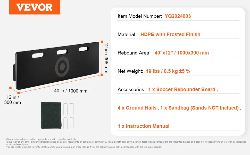 VEVOR Fußball Rebound Board, tragbares Prellwand 100 x 30 cm, HDPE Rebounder Ausrüstung mit 2 Rückprallwinkeln, Trainingsbrett Rebounder Kicker für Fußballtraining Pass- und Schussübungen