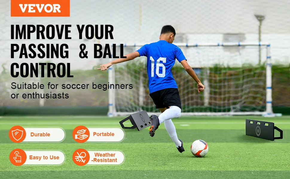 Unsere tragbare Fußballwand eignet sich sowohl für Erwachsene als auch für Jugendliche, denn sie ist zusammenklappbar, so dass sie leicht verstaut werden kann und wertvollen Platz spart, wenn sie nicht gebraucht wird.