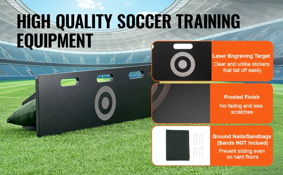 Robuste Struktur mit hoher Dichte: Diese Fußball-Passwand ist aus einer langlebigen HDPE-Platte mit mattierter Oberfläche gefertigt, die nicht verblasst und kratzfest ist. Das lasergravierte Ziel bietet im Gegensatz zu abziehbaren Aufklebern lang anhaltende Klarheit.