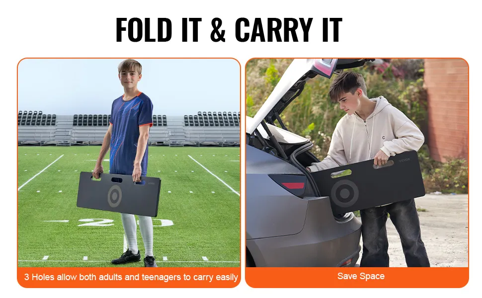 Zusammenklappbar & tragbar: Dieses Kickback-Rebound-Board verfügt über zusammenklappbare Beine und 3 Löcher, sodass Erwachsene und Jugendliche es problemlos tragen können. Es lässt sich für eine kompakte Lagerung leicht zusammenklappen, sodass Sie es in kleinen Bereichen wie Garagen, Hauswirtschaftsräumen oder hinter Türen unterbringen können.