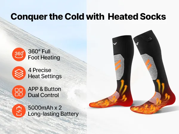 Unsere beheizten Socken mit vier Heizstufen sind ideal für jeden – vom jungen Abenteurer bis zum Senior – und sorgen dafür, dass jeder unter allen Bedingungen warm und gemütlich bleibt.