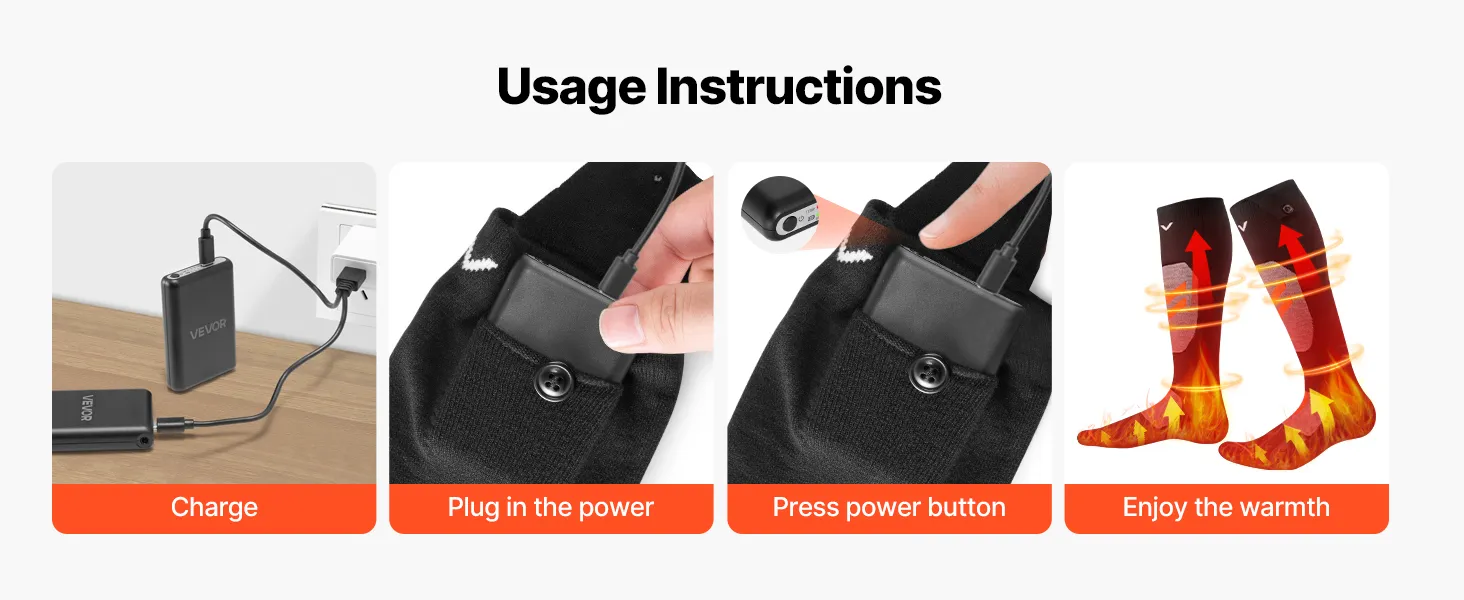 Vielseitig für alle Szenarien: Diese Heizsocken sind ideal für jedes Outdoor-Abenteuer – Skifahren, Wandern, Eisfischen oder sogar beim Gassigehen mit dem Hund. Geeignet für alle Altersgruppen, halten Sie sich unter allen Bedingungen warm und gemütlich.