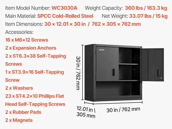 Robuste und langlebige Konstruktion: Dieser wandmontierte Lagerschrank ist aus dickem, kaltgewalztem SPCC-Stahl gefertigt und verfügt über eine Pulverbeschichtung für Rost- und Korrosionsbeständigkeit. Er bleibt jahrelang robust und zuverlässig.