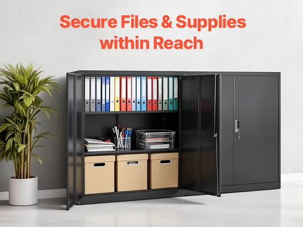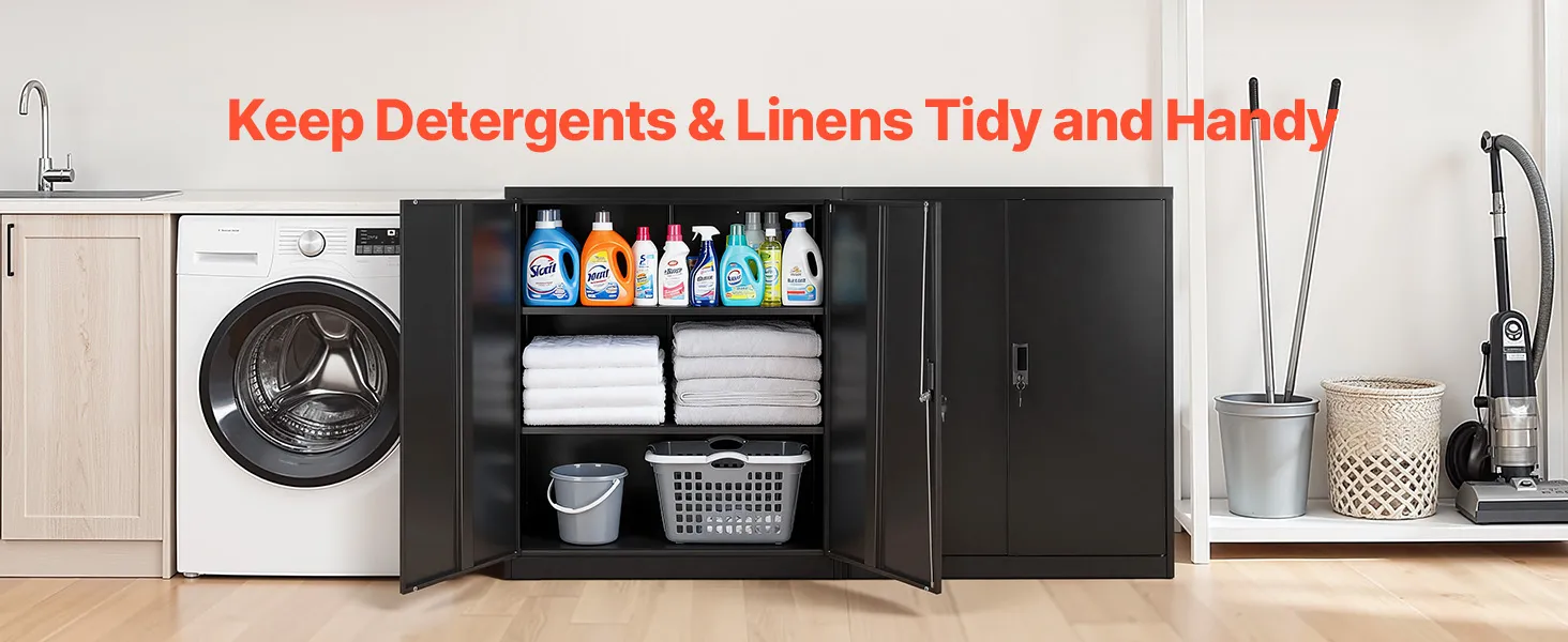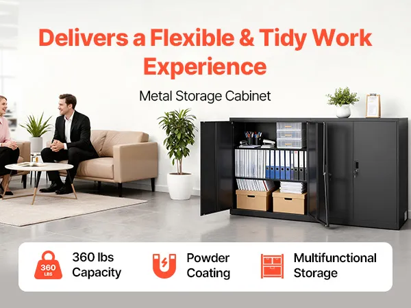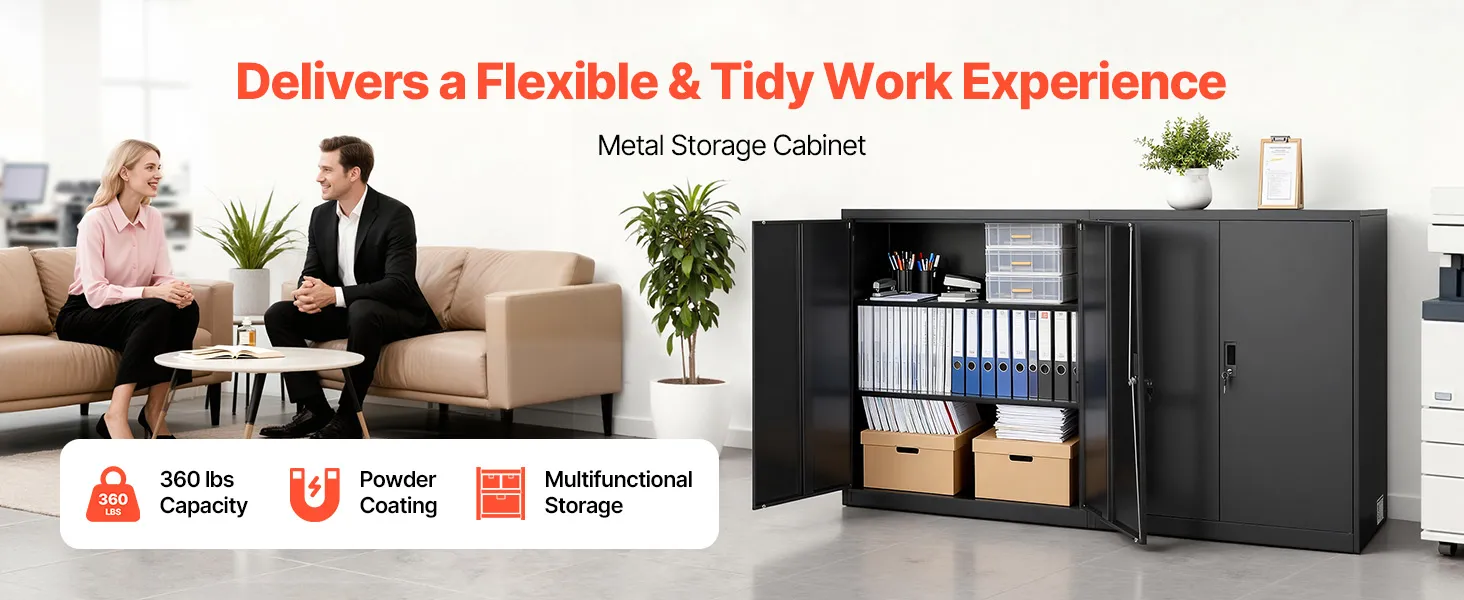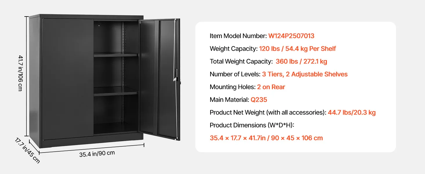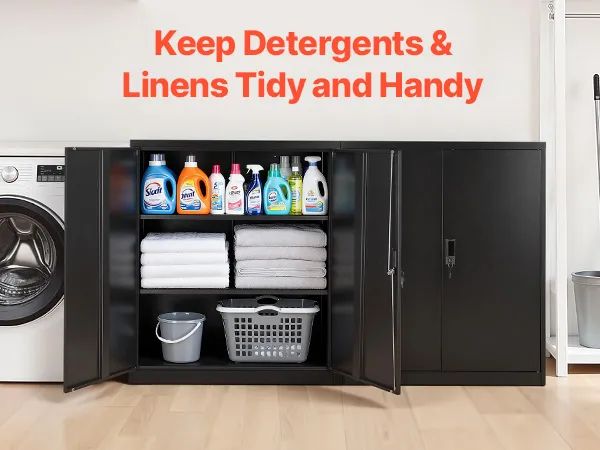 Maximale Stauraumnutzung: Dieser Metallschrank bietet drei geräumige Ebenen mit zwei verstellbaren und herausnehmbaren Einlegeböden, die sich ideal für Gegenstände unterschiedlicher Höhe eignen. Dank seines flexiblen Designs ist er perfekt zur Aufbewahrung von Büroakten, Werkzeugen für die Garage oder Haushaltsgegenständen
