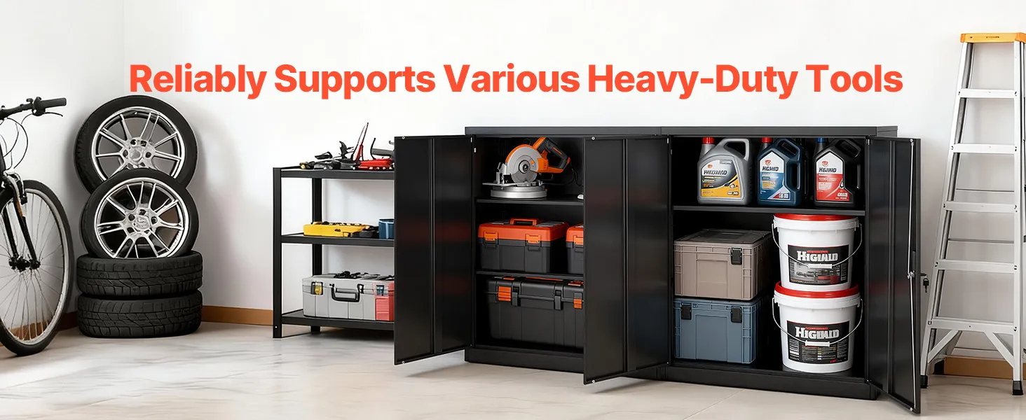 Robust & langlebig: Dieser Garagenschrank aus hochbelastbarem Stahl ist rost-, korrosions- und kratzfest. Jedes Regalbrett trägt bis zu 54,4 kg (120 lbs), die Gesamttragfähigkeit beträgt 163,3 kg (360 lbs). Ideal zur Aufbewahrung von Büroakten und Werkzeug