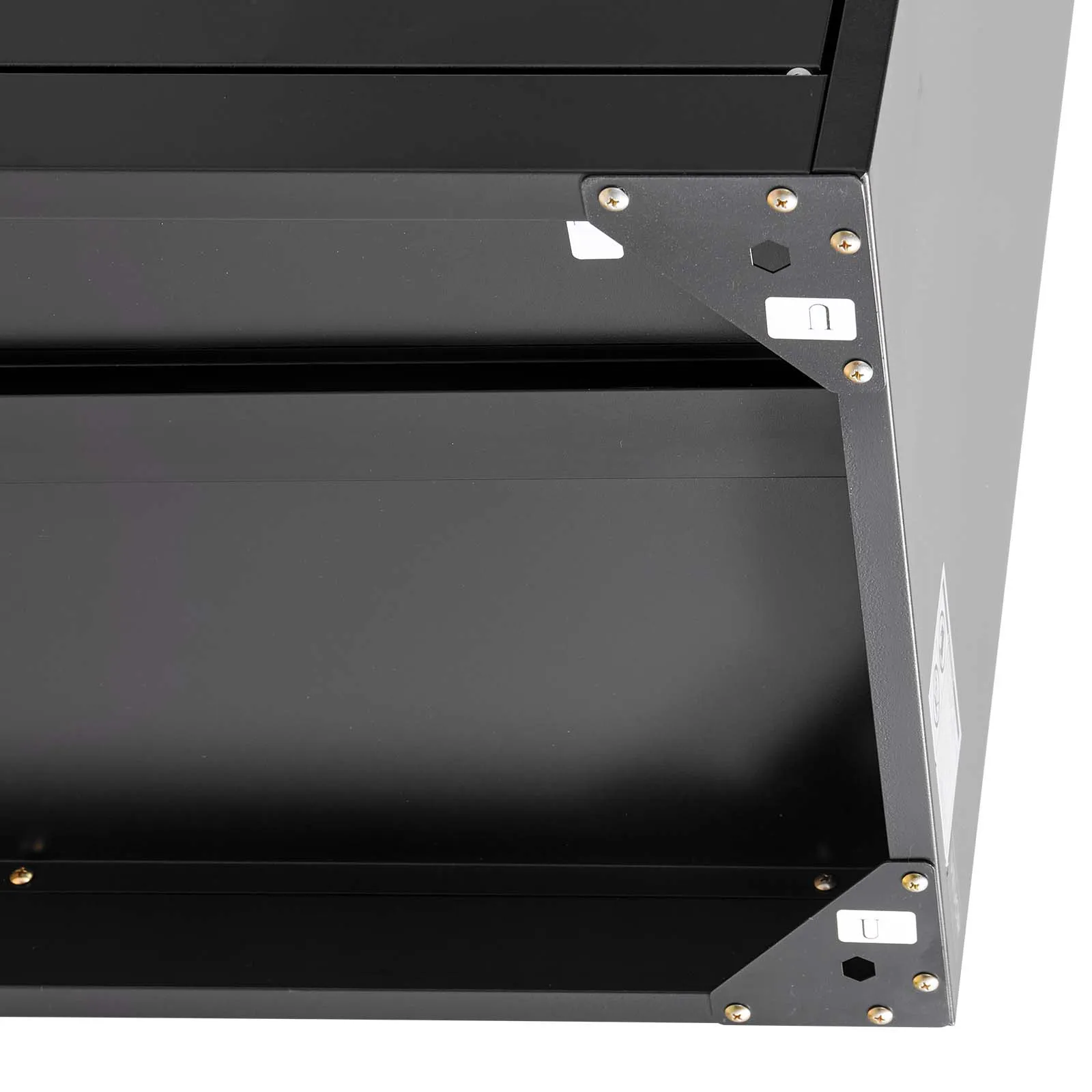 Wandmontage-Sicherheit: Die Rückseite dieses Aufbewahrungsschranks verfügt über Befestigungslöcher für eine sichere Wandmontage. Installieren Sie vor Gebrauch immer die Kippsicherung, insbesondere in der Nähe von Kindern oder auf unebenen Flächen, um zusätzliche Stabilität zu gewährleisten