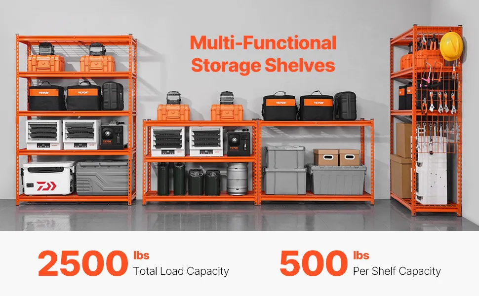 VEVOR Lagerregale,1134 kg, 5-stufiges Schwerlastregal für die Garage, 457,2x1219,2x1828,8 mm, verstellbare Steckregale für Industrieregale, Allzweckregal, Kellerregal für Küche, Lager, Keller, Orange
