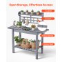 VEVOR Potting Bench Table, Outdoor Gardening Workstation with Sink, 94-140 cm Adjustable Wood Tabletop, Garden Work Station with Storage Shelves, Hooks for Patio, Backyard, Classic Grey