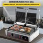 Diese kommerzielle Panini-Presse mit Edelstahl-Außengehäuse und gusseisernem Grill eignet sich perfekt für die Zubereitung verschiedener Speisen, wie Panini-Sandwiches, Steaks, Fleisch, Rührei usw. Die parallelen, doppelt gerillten Platten erleichtern die gleichmäßige Erwärmung, ohne dass die Speisen gewendet werden müssen. Die Temperatur ist von 50-300 ℃ (122-572 ℉) einstellbar. Perfekt für den gewerblichen Einsatz!