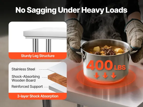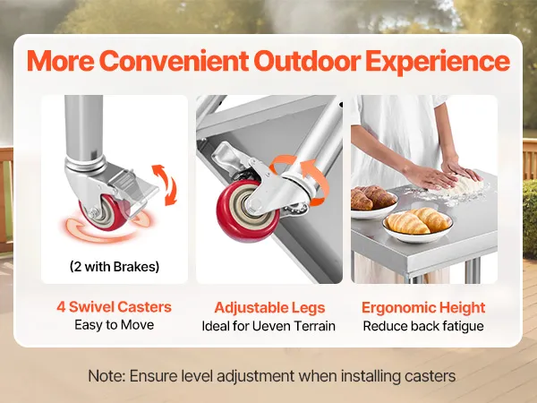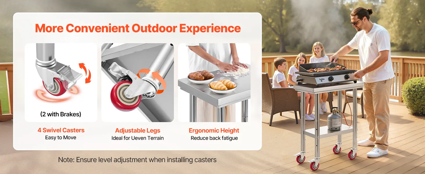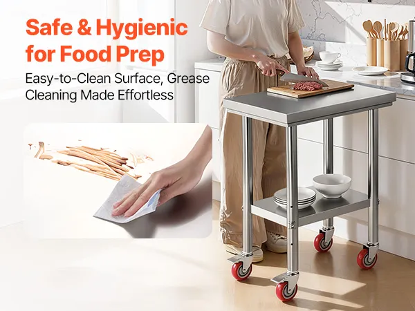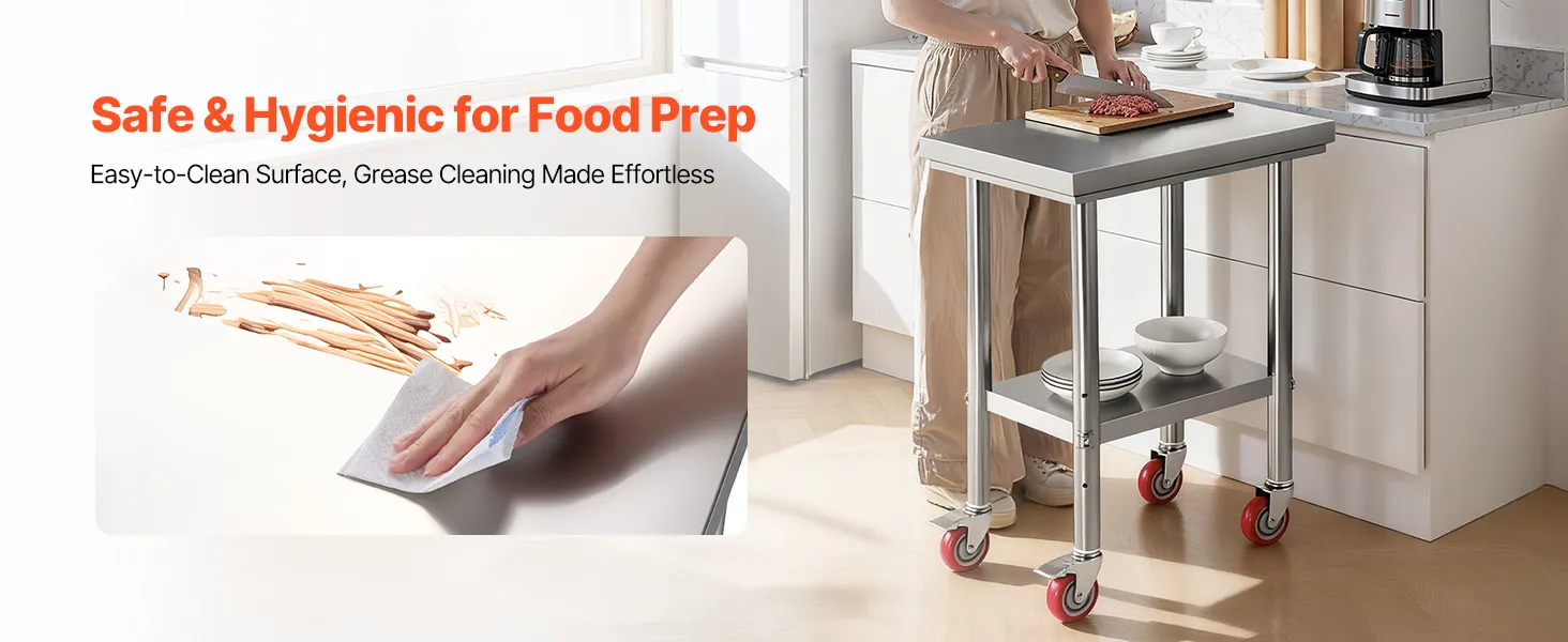 Stabil & langlebig: Das obere Regal trägt bis zu 400 lbs (180 kg), das untere bis zu 300 lbs (136 kg) und bietet so ausreichend Stauraum für Ihre Vorräte. Dank der 4 Lenkrollen (2 mit Bremsen) bleibt der Arbeitstisch stabil und lässt sich leicht bewegen, wohin Sie ihn brauchen