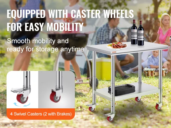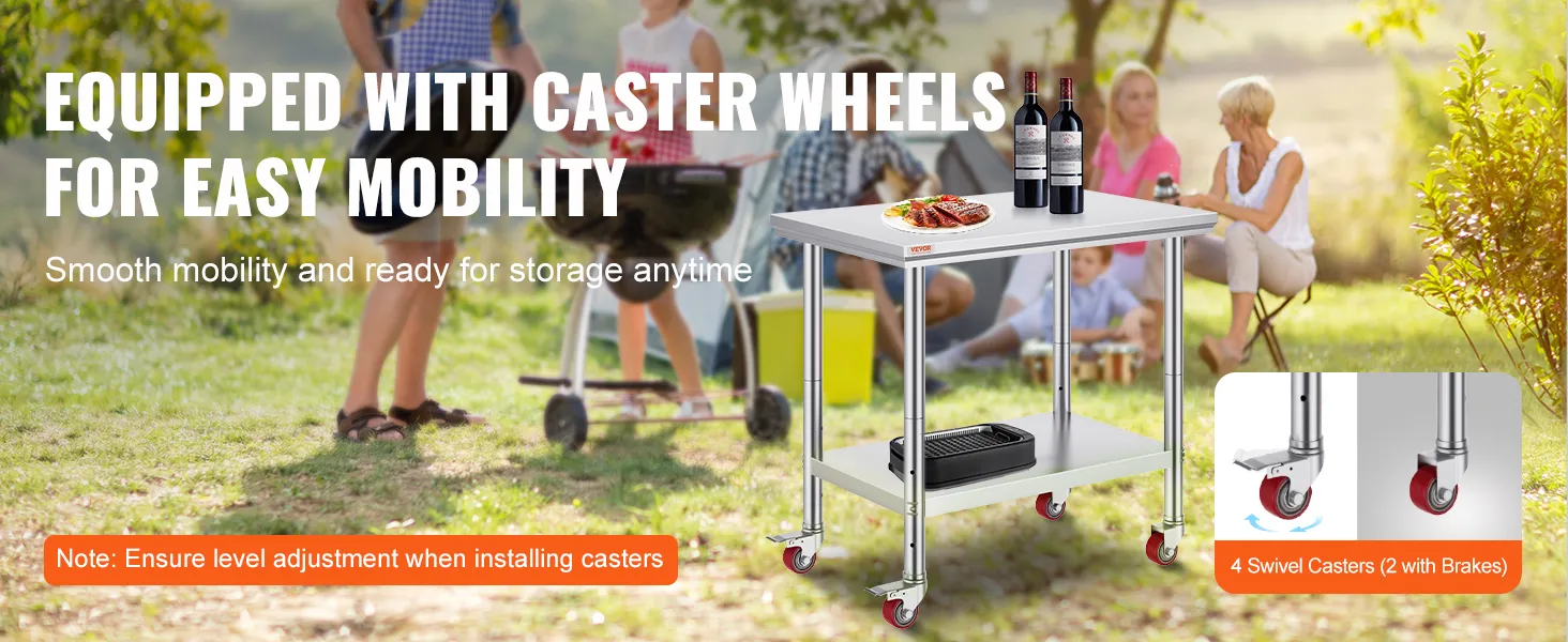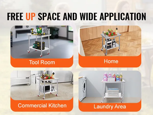 Der VEVOR 24 x 36 Edelstahl-Arbeitstisch lässt sich problemlos in jedem Arbeitsbereich integrieren. Sein professionelles Design passt sowohl in moderne Küchen als auch in industrielle Umgebungen. Trotz seiner kompakten Größe bietet er ausreichend Arbeitsfläche und eine hohe Belastbarkeit – ideal für Köche, Bäcker und alle, die einen stabilen Vorbereitungstisch benötigen.