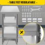 VEVOR-Speisezubereitungstisch für den Außenbereich mit regulierbaren Füßen und mitgelieferten Montageteilen.