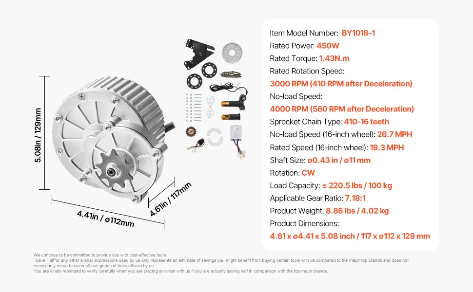Leistungsstarke, effiziente Leistung: Der leistungsstarke Gleichstrommotor von VEVOR liefert 450 W Ausgangsleistung und arbeitet effizient mit einer Umwandlungseffizienz von ≥ 78 %. Dies gewährleistet eine zuverlässige Geschwindigkeit auch auf schwierigem Gelände und einen geringeren Energieverbrauch. Perfekt für Elektrofahrräder, Roller und andere Heimwerkerprojekte für Elektrofahrzeuge, die eine hohe Leistung erfordern.